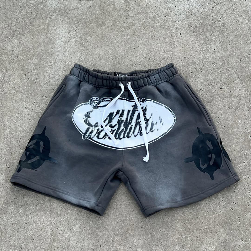 Custom Rhinestone Logo Fabricante de alta calidad Vintage algodón ácido lavado Sun Faded Shorts para los hombres