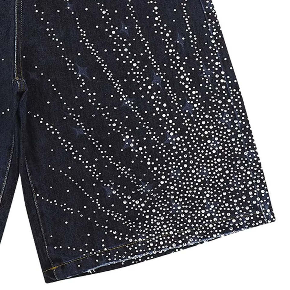 Fabricante de Logotipos Personalizados con Pedrería, Pantalones Cortos de Algodón Vintage con Estampado Puff de Alta Calidad, Lavado Ácido, Efecto Desteñido por el Sol