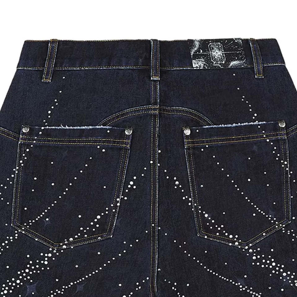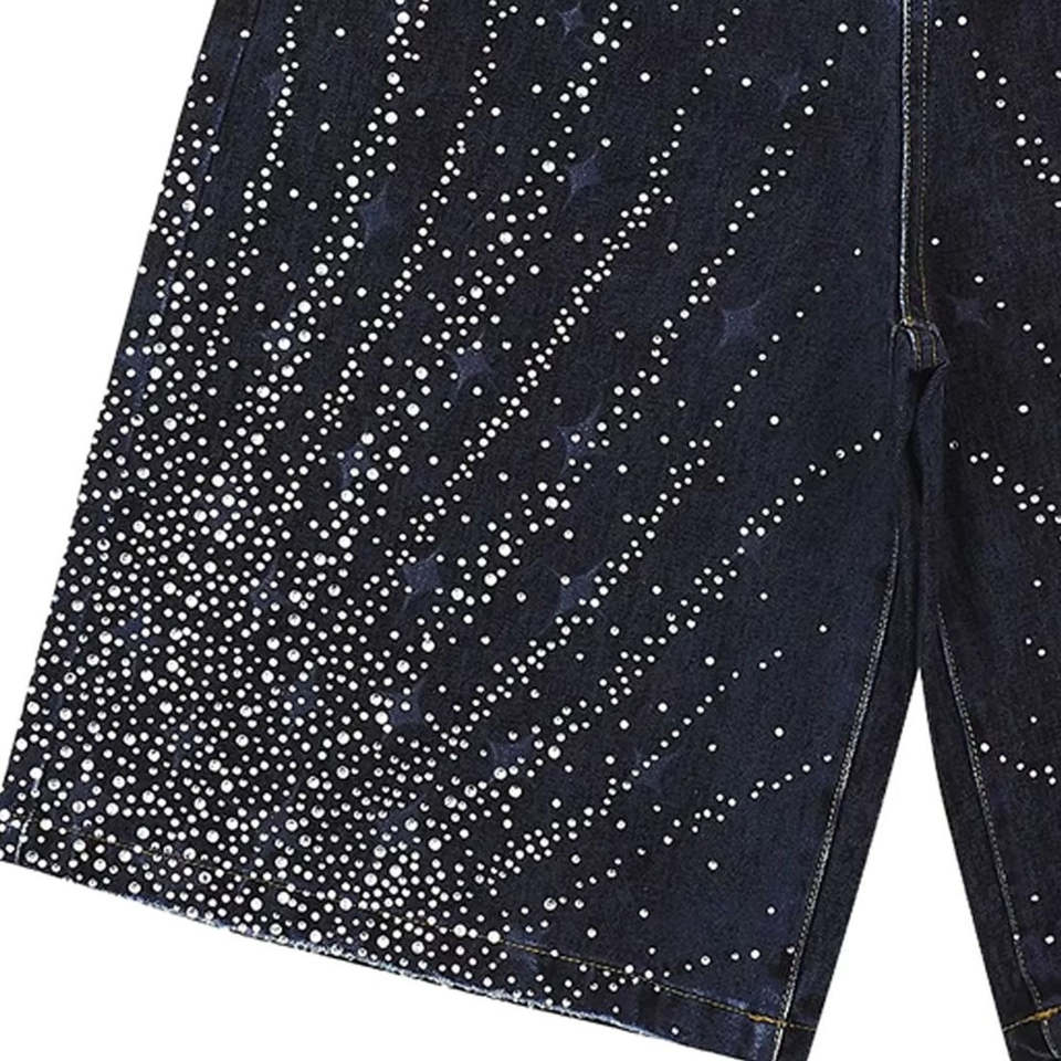 Shorts con pedrería y efecto deslavado ácido
