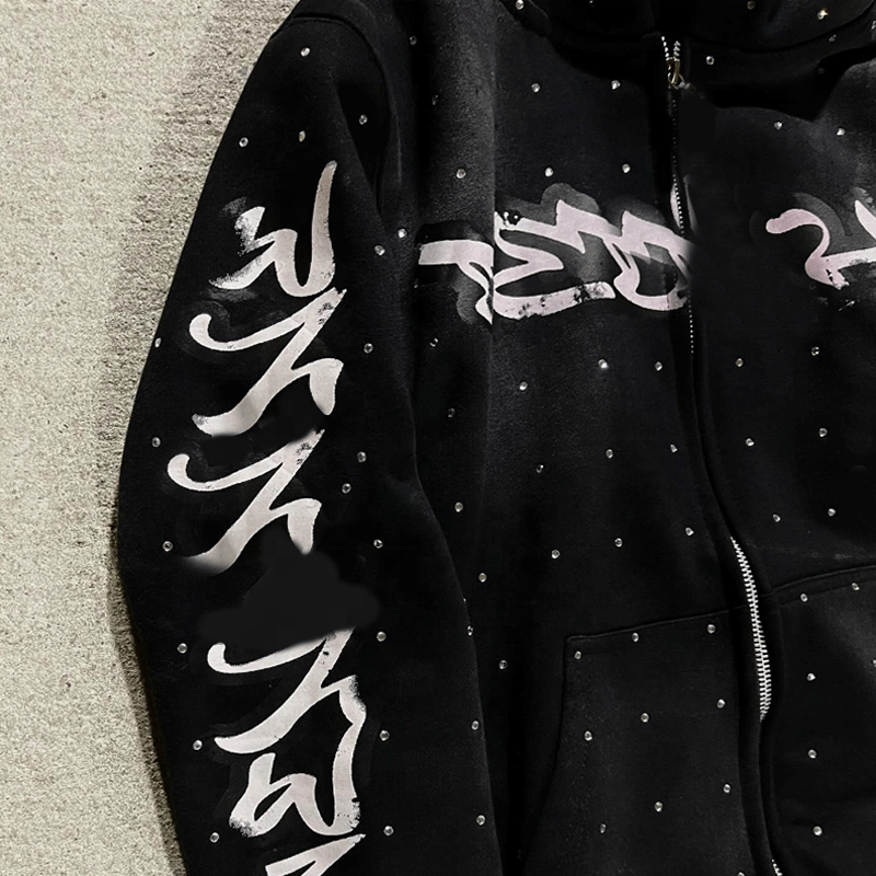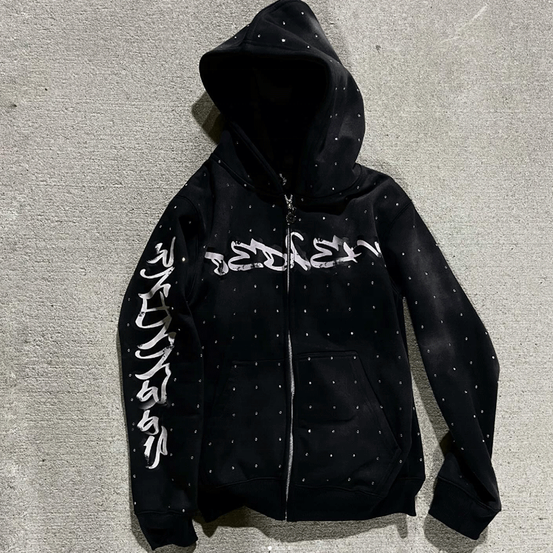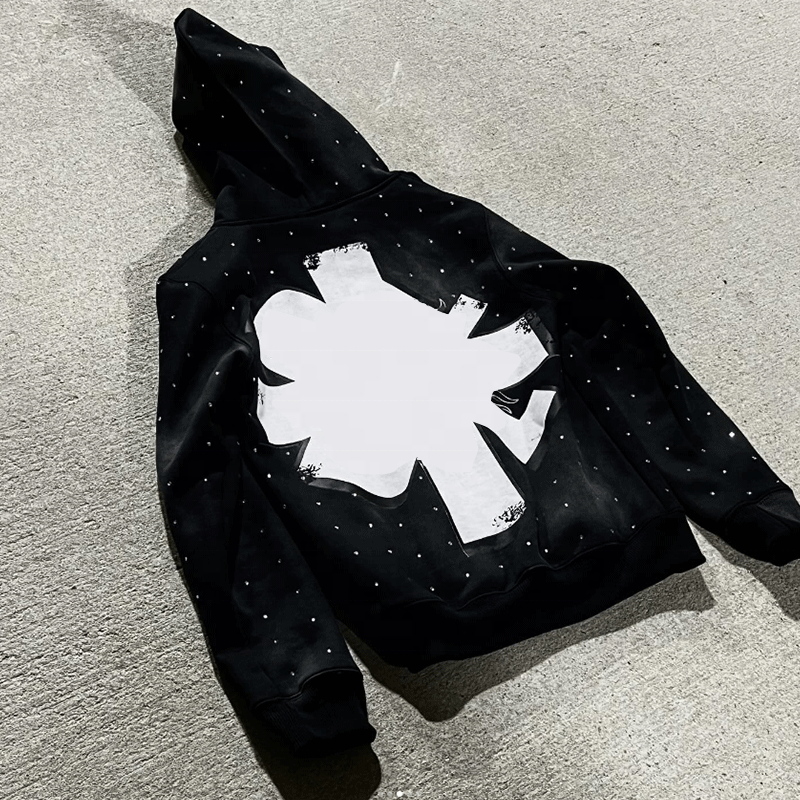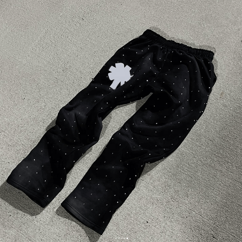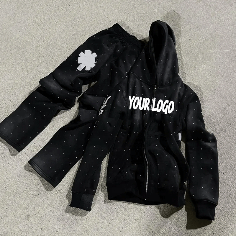 Conjunto de chándal de 2 piezas con logotipo personalizado de diamantes de imitación OEM para hombre, conjunto de sudadera y pantalones de chándal transpirables para hombre