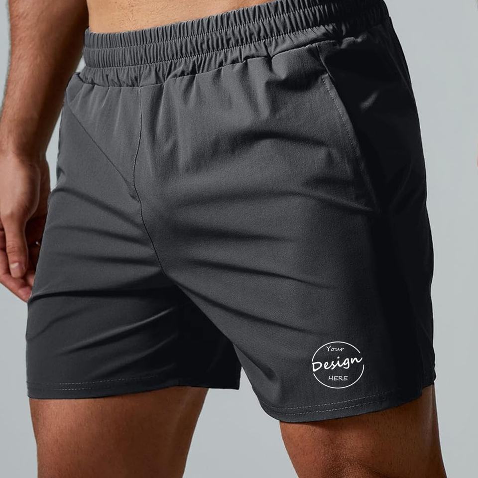 Pantalones cortos de tejido deportivo para hombre, pantalones cortos deportivos de alta elasticidad en blanco 95% poliéster 5% Spandex, bolsillo con cremallera, cintura elástica Regular