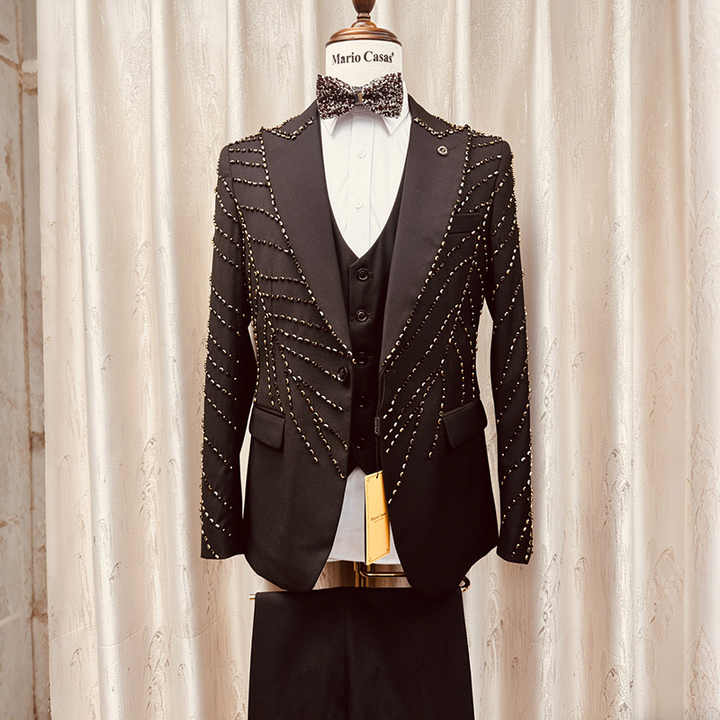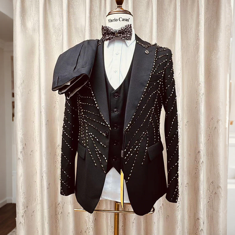 Traje Brillante con Pedrería Personalizado para Hombre, Esmoquin de 3 Piezas, Chaqueta, Chaleco y Pantalones, Ropa Formal para Fiesta, Hecho a Mano con Cuentas, de Lujo