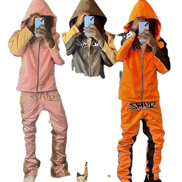 Conjunto de Chándal Personalizado con Pedrería, Pantalones Deportivos Anchos y Sudadera con Capucha, Ropa Urbana de 2 Piezas