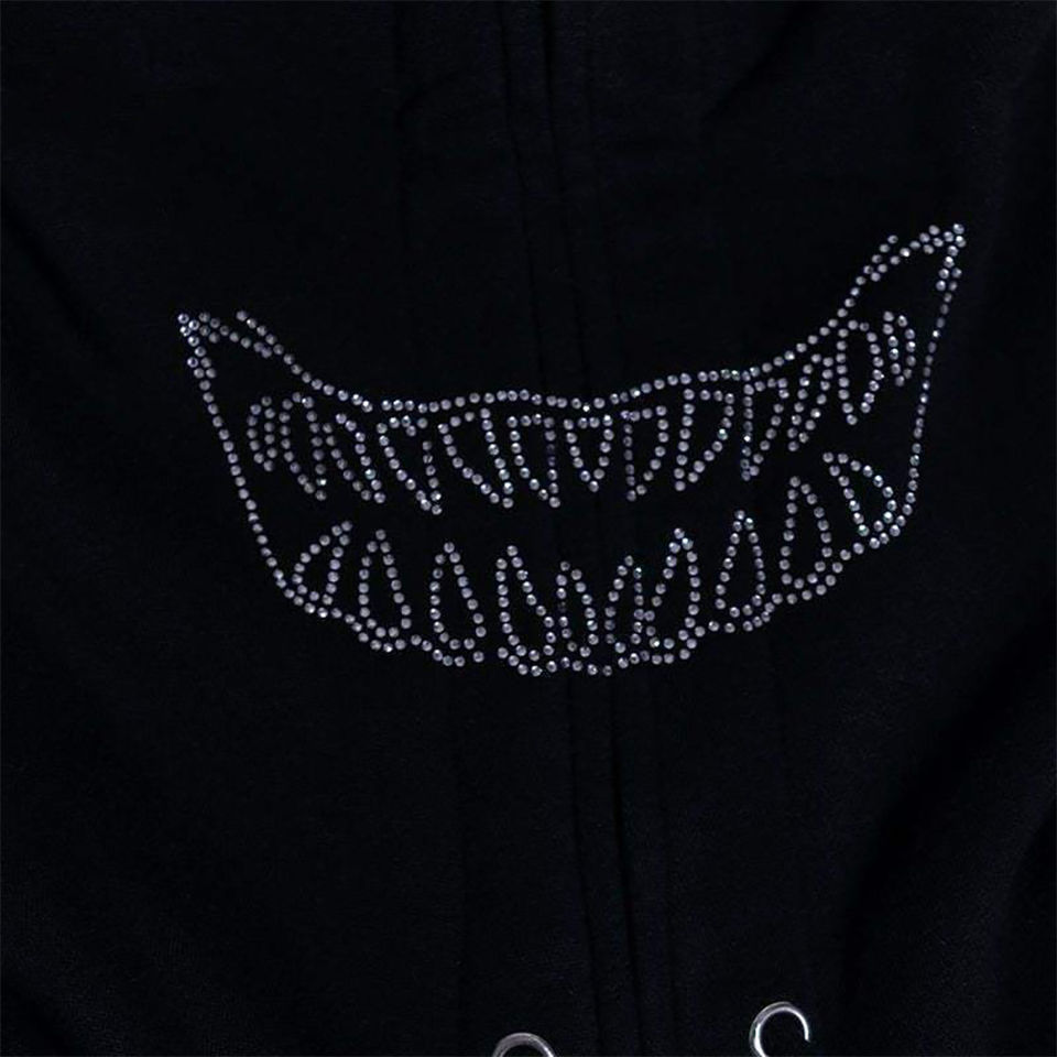 Sudadera con capucha y cremallera con diamantes de imitación personalizada Sudadera con capucha gótica de gran tamaño de manga larga Chaqueta con capucha y cremallera