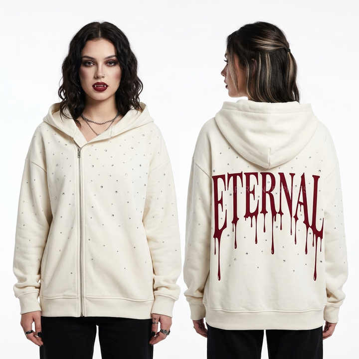 Custom Rhinestone Zip Up Hoodie Women White Eternal Drip Graphic Sweatshirt Y2K Streetwear Manufacturer Asymmetric Zip