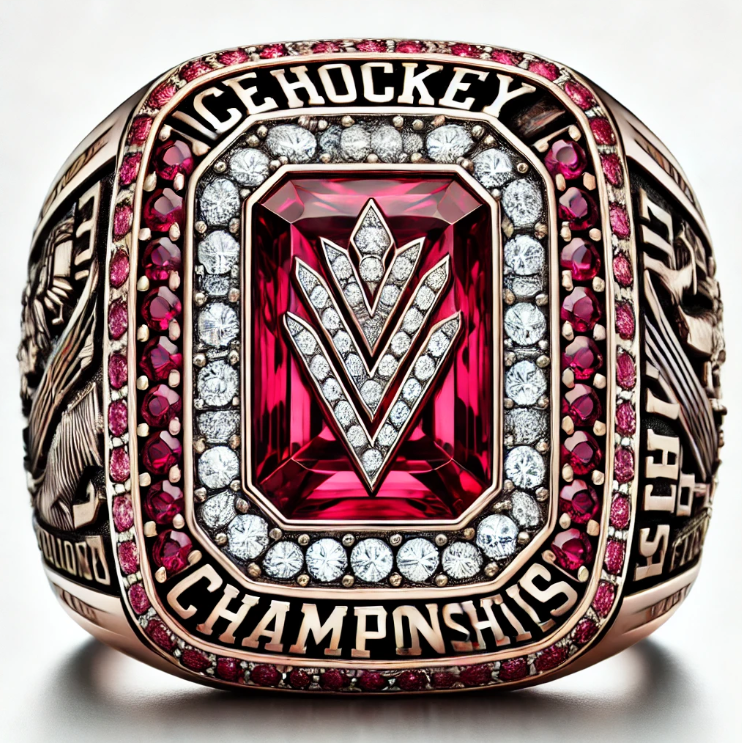 Anillos de Hockey Personalizados en Rodio Plateado, Plata de Ley 925 con Circonita Cúbica AAAAA