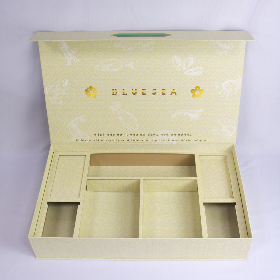 Caja de embalaje de pescado seco rígida personalizada, cartón reciclable Couche para exportación al por mayor y al por menor de Vietnam