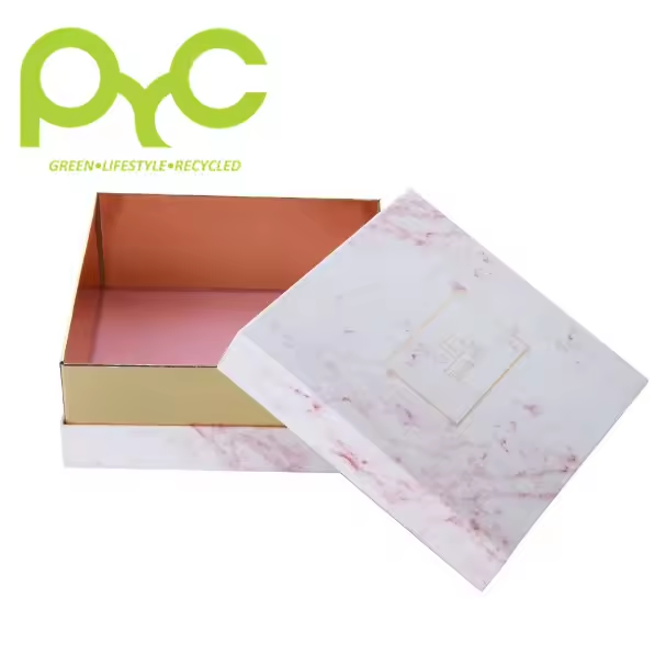 Juego de caja de regalo de embalaje de papel de cartón reciclado rígido personalizado para caja de cartón corrugado de Navidad con lámina dorada gracias