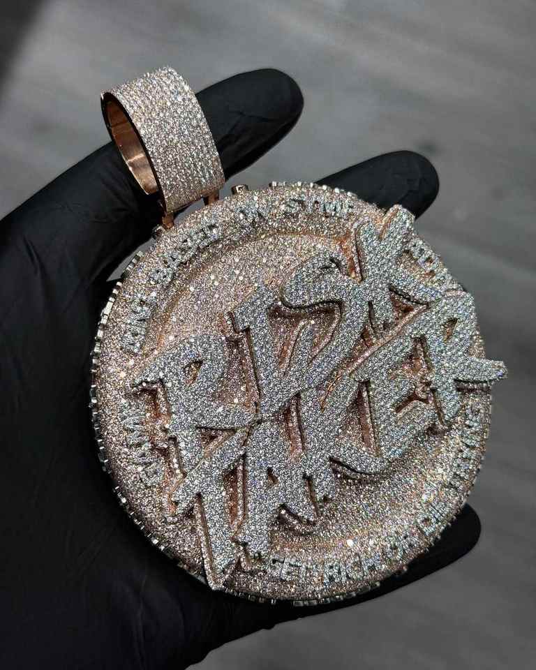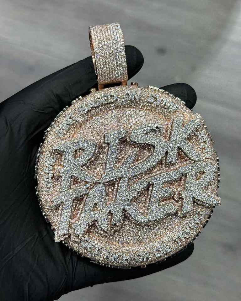 Custom Risk Taker Iced Charm Pendant 925 Silver Moissanite Rose Gold Finish Hip Hop Statement Jewelry Rapper Bling Chain