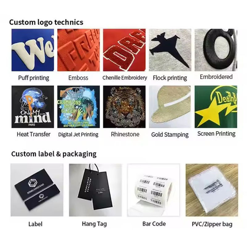Técnicas:Bordado, Impreso, Lavado, Tinte sencillo, Corbata tintada, Flocado, Bordado 3D, Lavado a piedra