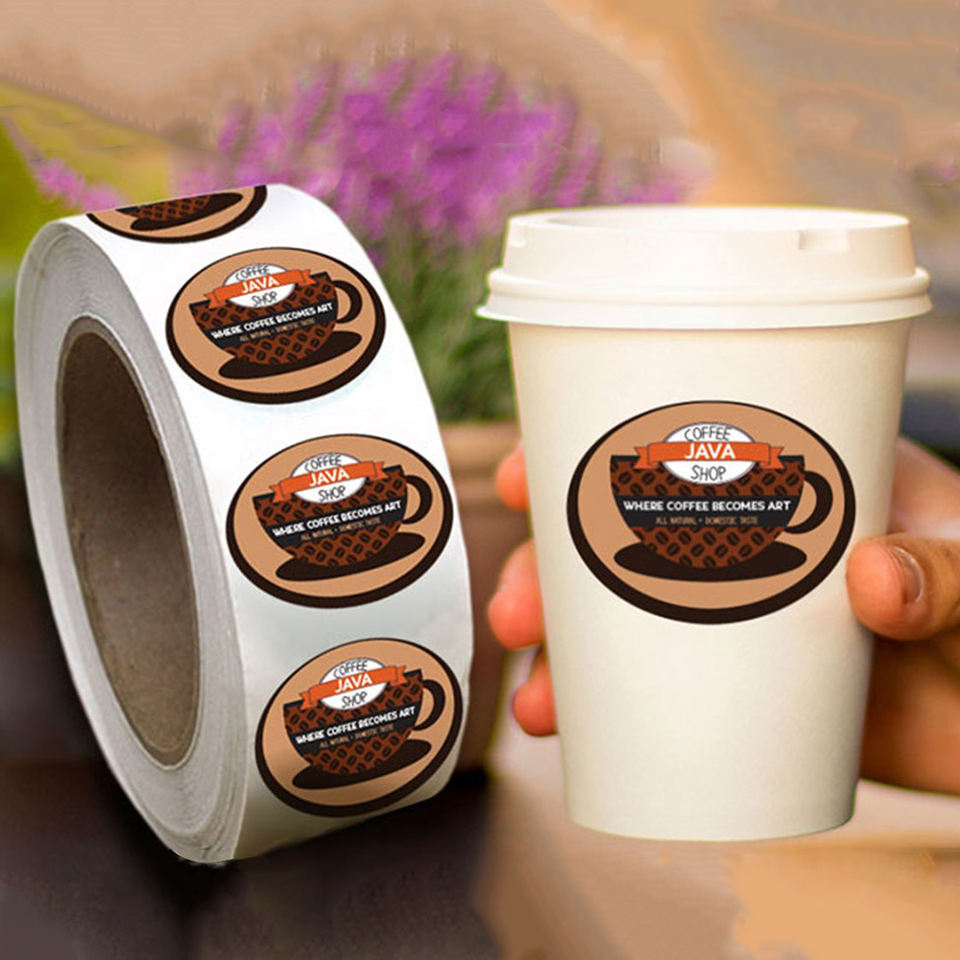 Etiqueta Adhesiva Mate Impermeable Personalizada para Envasado de Alimentos en Rollo, para Tazas y Bolsas de Comida para Llevar de Cafeterías y Panaderías