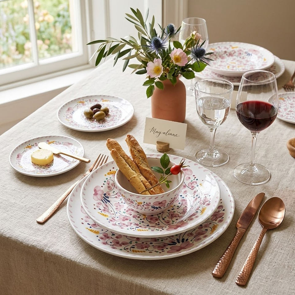 Juego de Vajilla de Cerámica Floral Rosa Romántico Personalizado, Platos de Porcelana con Calcomanías Vintage, Aptos para Lavavajillas, para Bodas y Venta al por Menor