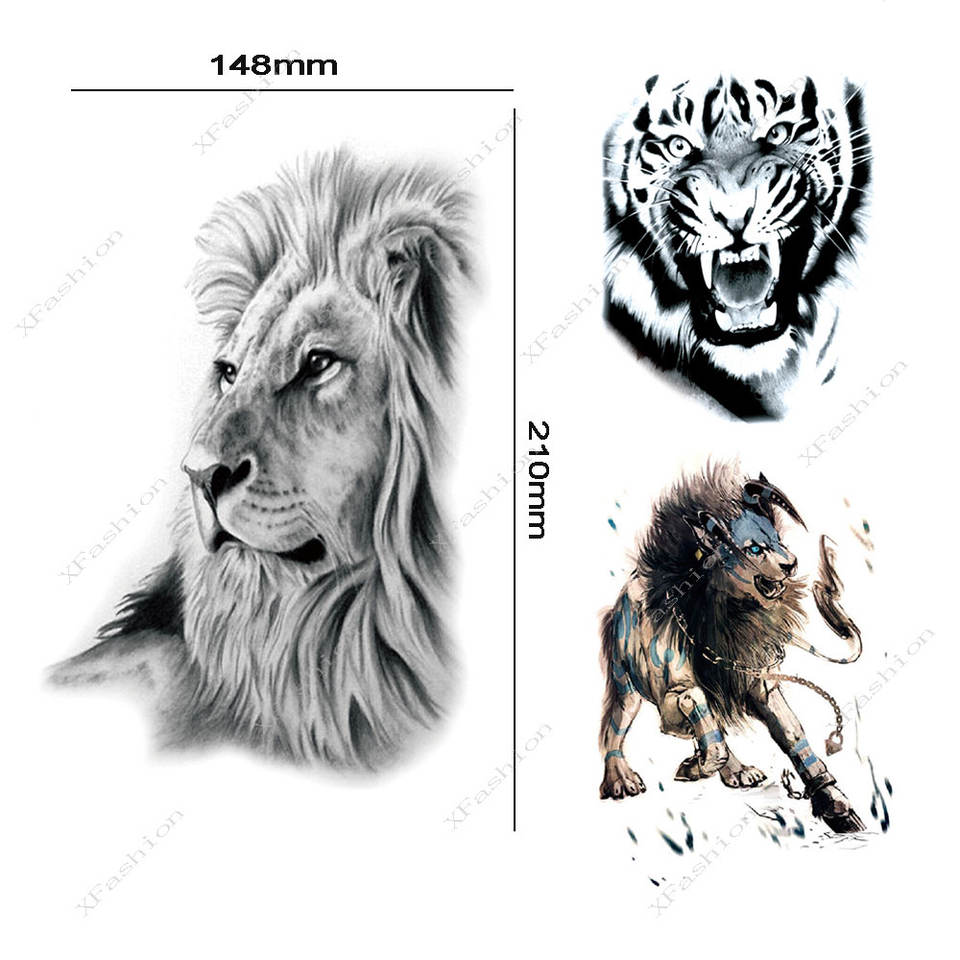 Tatuajes temporales de flores rosas personalizados para mujeres León Tigre Sexy impermeable tatuaje pegatina