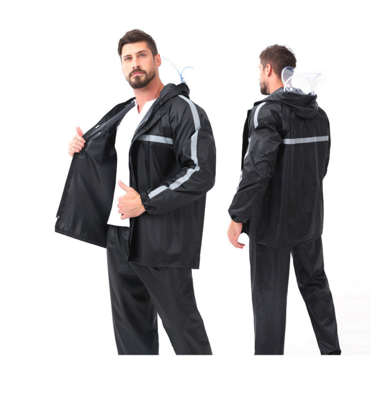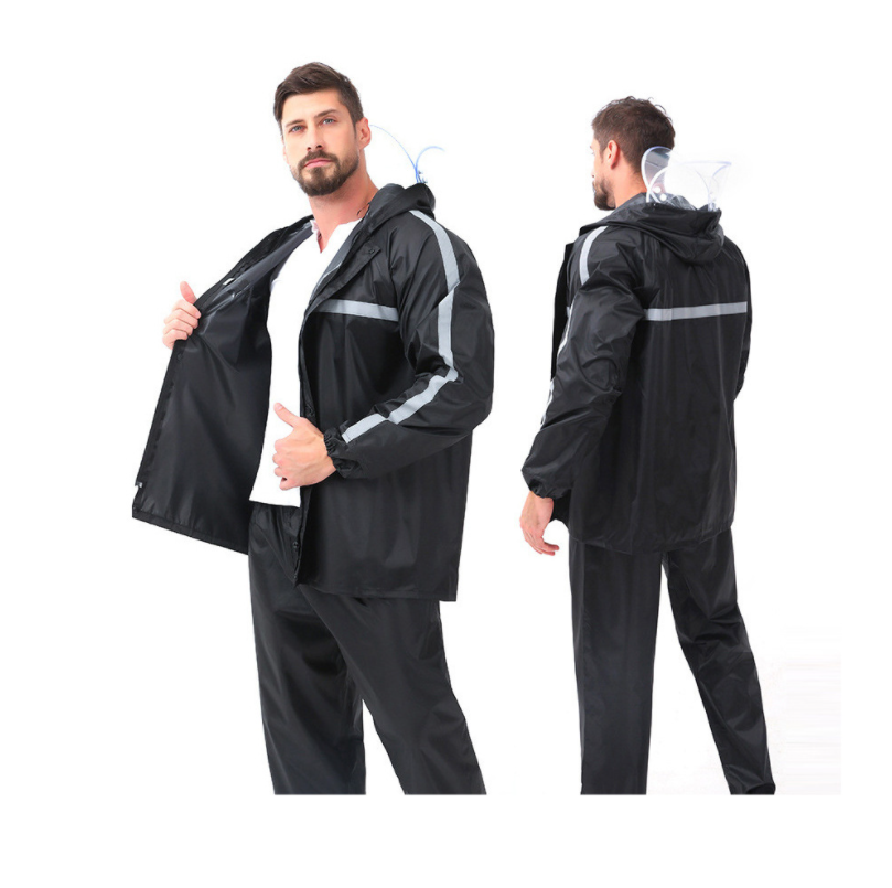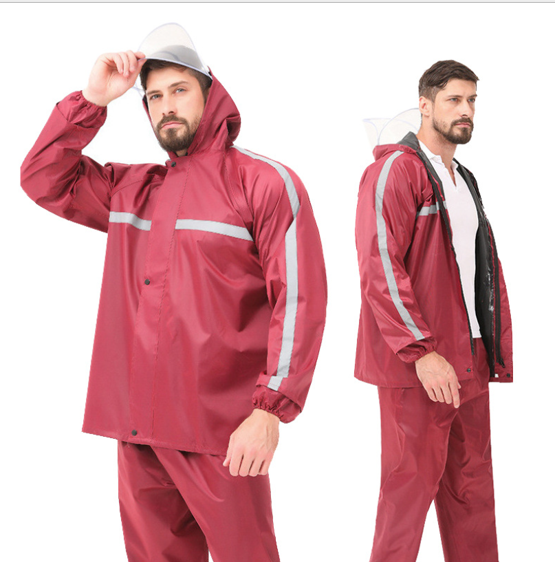 Traje de lluvia reflectante multicolor rojo rosa personalizado, impermeable y pantalón de tela Oxford gruesa de PVC, con procesamiento mejorado para caza