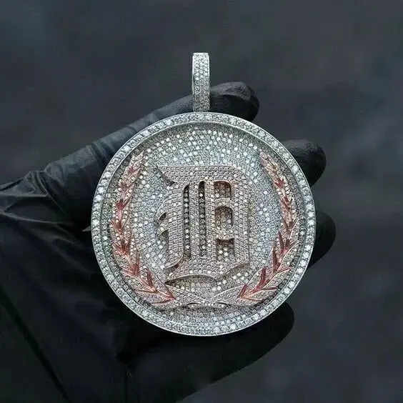 Colgante de disco redondo personalizado con letras, completamente cubierto de circonitas, colgante personalizado de plata de ley 925, estilo rapero, joyería personalizada para hombre