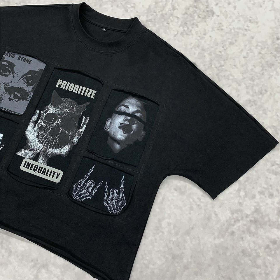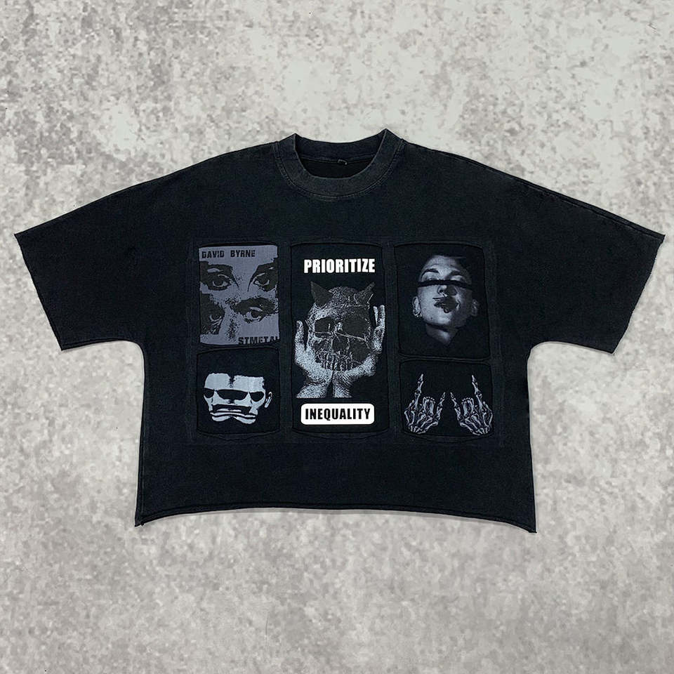 Camiseta de Algodón con Cuello Redondo Personalizada, Estampada con Diseño Gráfico, Estilo Urbano, para Hombre