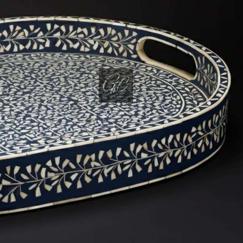 Bandeja de mesa de cena con forma de rectángulo redondo personalizado resina de alta calidad y incrustaciones de hueso de flora platos para servir ágata diseño atractivo