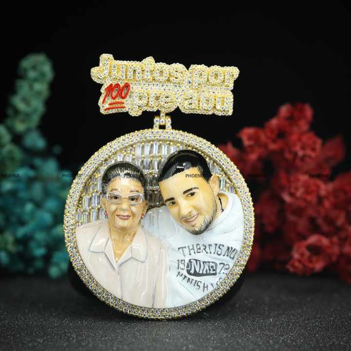 Colgante de Foto 3D con Esmalte, Forma Redonda Personalizada, con Argolla Personalizada, Plata de Ley 925, Chapado en Oro Amarillo, Regalo de Joyería para Hombre y Mujer