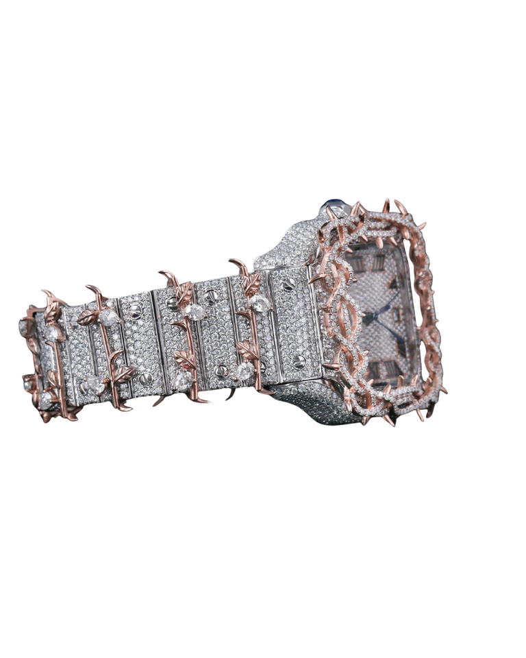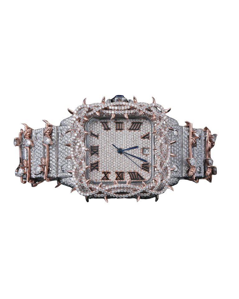 Reloj de Lujo Personalizado con Forma Redonda, Estilo Hip Hop, con Cristales de Moissanita en Oro Rosa y Esfera Blanca