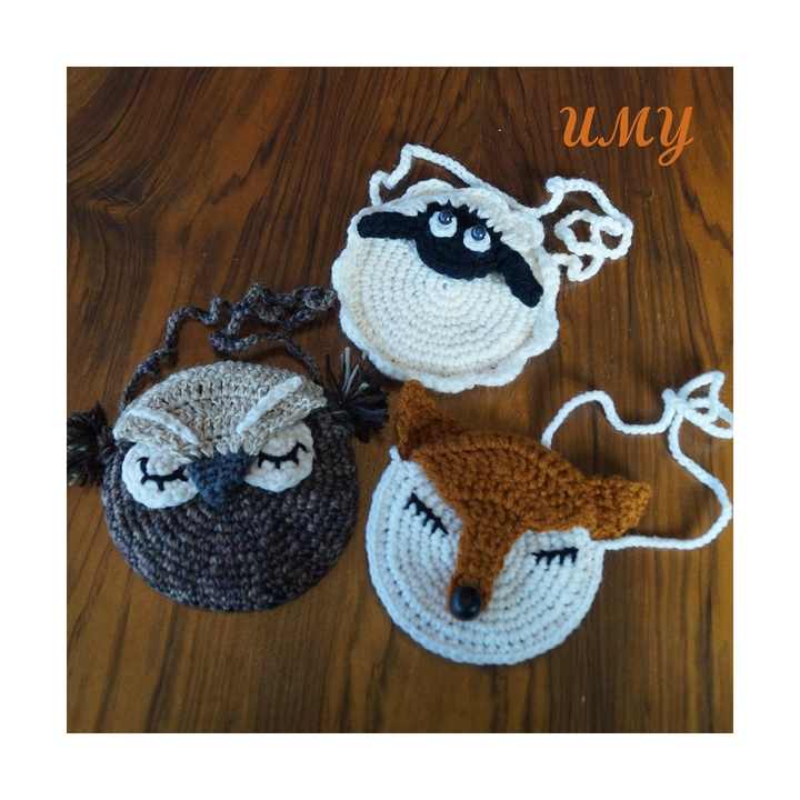 Cartera de viaje con almacenamiento de auriculares pequeños redondos personalizados, monedero de ganchillo con cuello, bolsa abierta