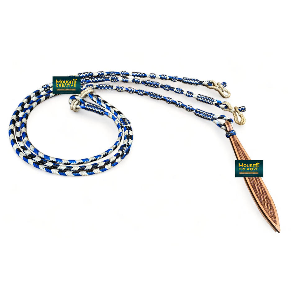 Western Horse Royal & Black Dyed Braided Natural Rawhide Romal ReinsProduct Name