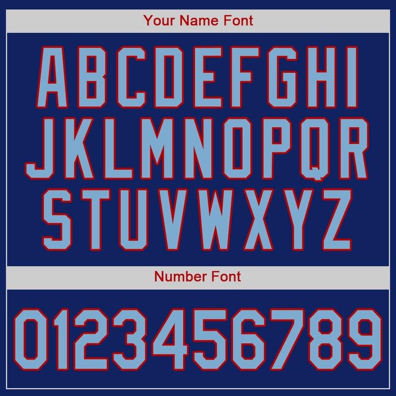 Camiseta de béisbol auténtica azul claro real personalizada-roja