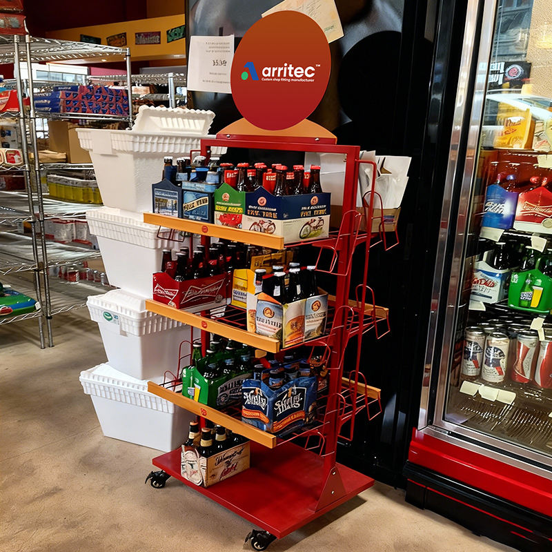 Exhibidor de Bebidas de 3 Niveles Personalizado para Tiendas, Exhibidor de Refrescos de Metal con Logotipo