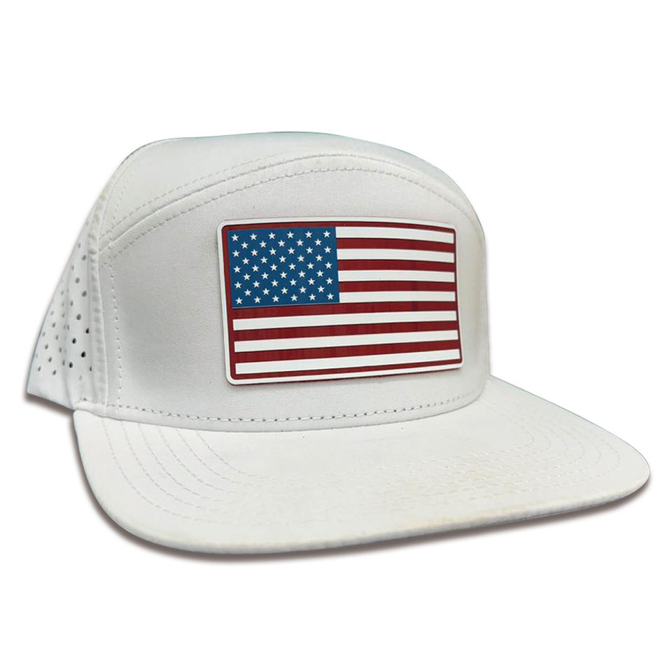 Parche de goma personalizado agujero cortado con láser rendimiento pico plano ala 6 paneles impermeable en blanco hombres Snapback gorra de béisbol sombrero