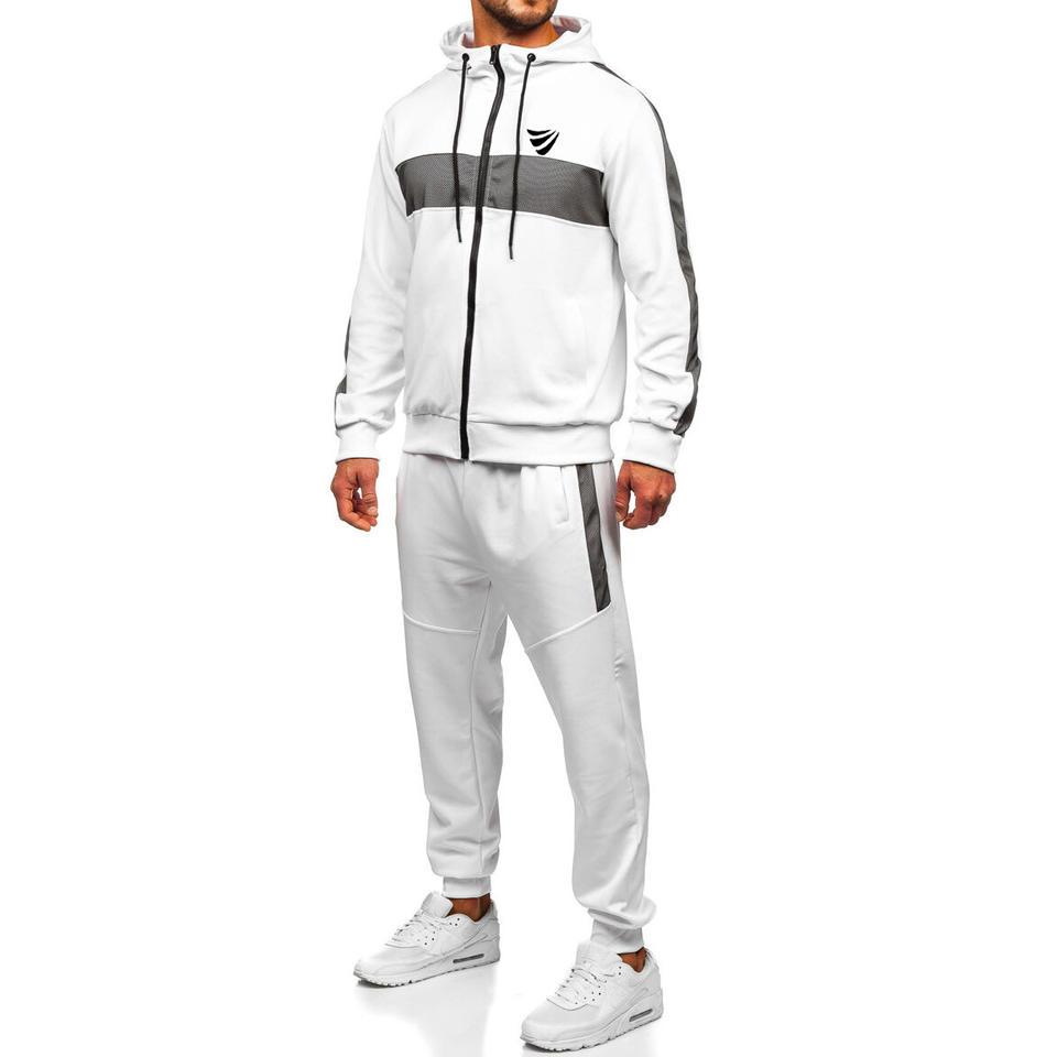 Chándal personalizado para correr, chándal de 100% poliéster, conjunto de mallas deportivas para gimnasio, chándales con capucha y cremallera completa para hombre