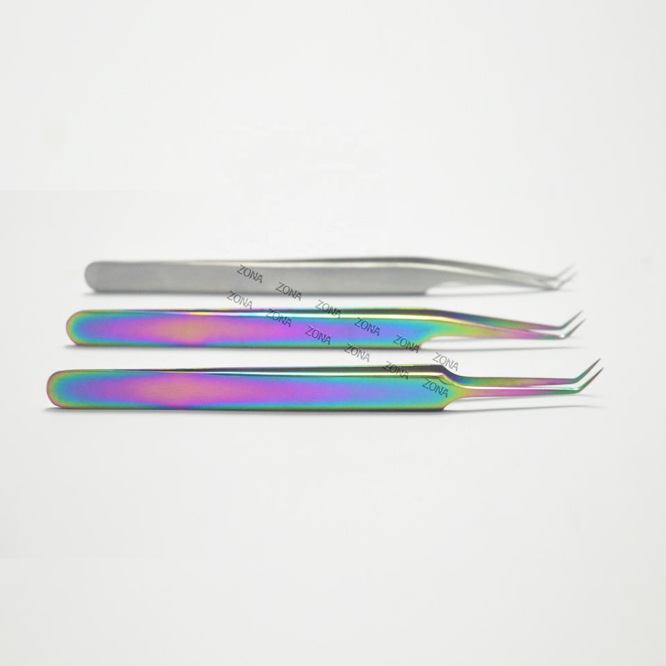 Pinzas de pestañas rusas de volumen personalizadas, nuevo diseño, pinzas de extensión de pestañas a granel, pinzas de pestañas cómodas de acero inoxidable