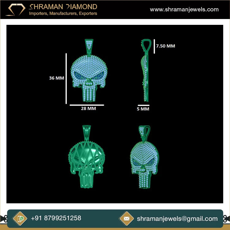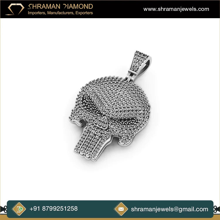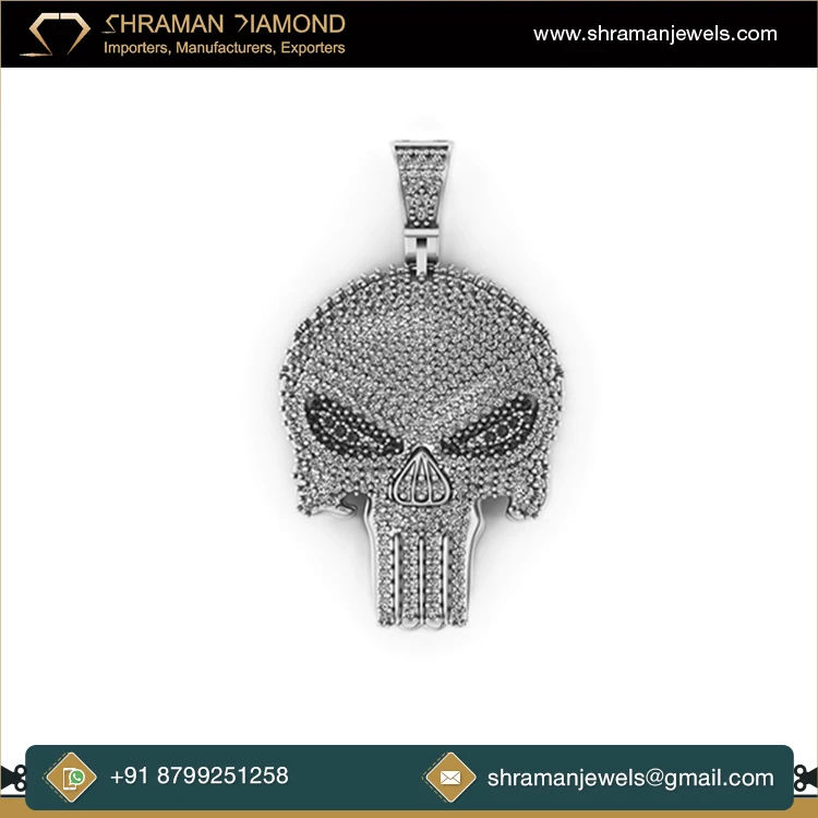 Collar con Colgante de Calavera Punisher de Plata 925 con Diamantes de Imitación y Moissanita, Estilo Hip Hop, Personalizado, de SHRAMAN DIAMOND, para Halloween