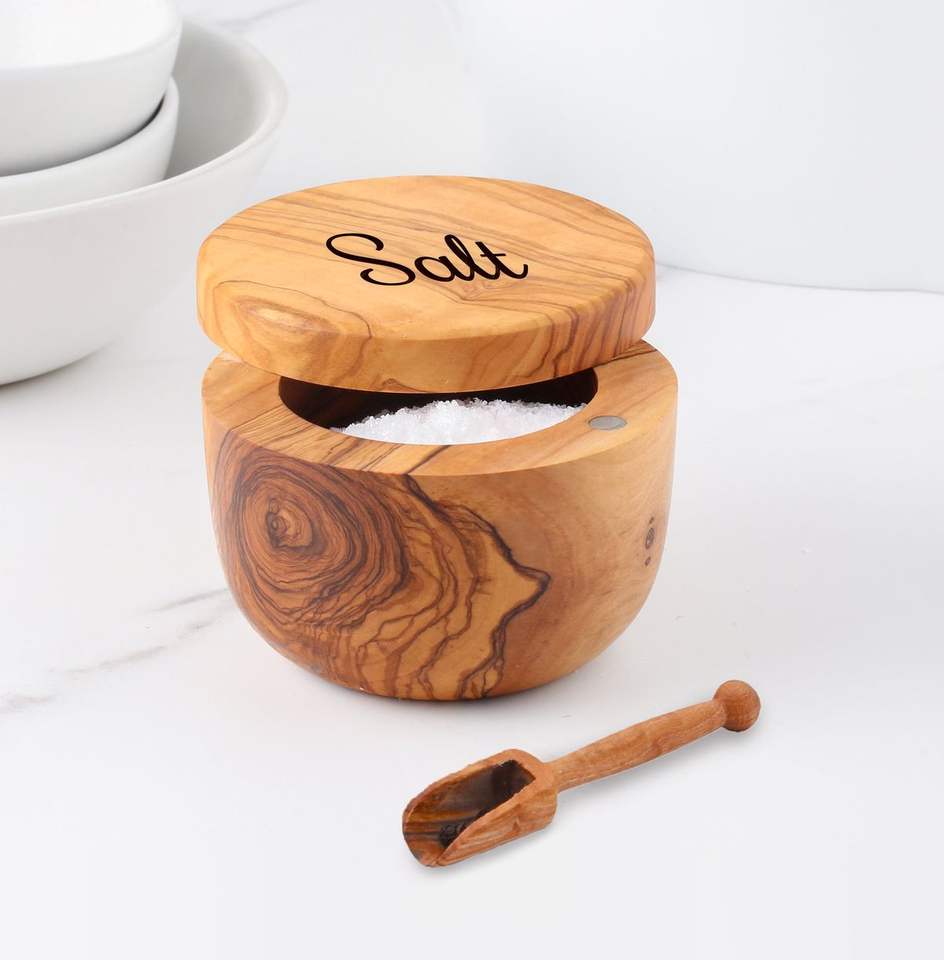 Salero y Pimentero Personalizados, Contenedor de Madera, Apto para Lavavajillas, Ecológico, Almacenamiento para Cocina, Regalo, Colección Hecha a Mano