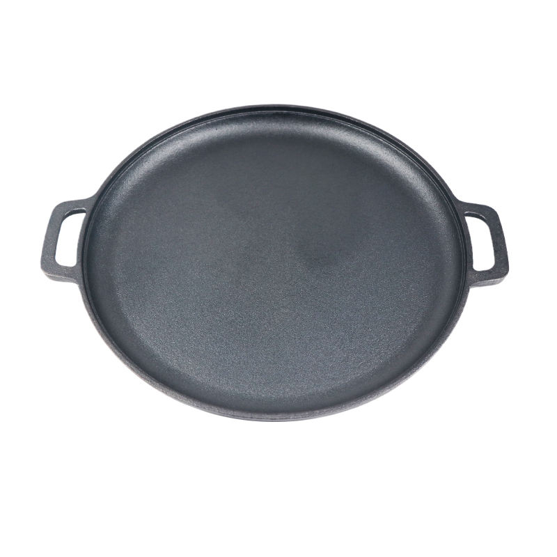 Servicio personalizado de fundición en arena para acampar al aire libre, barbacoa, panqueques presazonados, parrilla plana para freír, sartén de hierro fundido para Pizza
