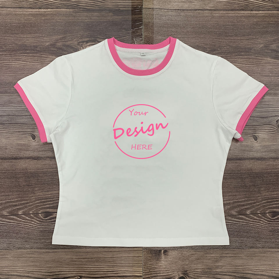 Camiseta recortada de LICRA 95% algodón 5% con serigrafía personalizada, Camiseta ajustada de 180gsm para mujer, camiseta con anillo con estampado de logotipo personalizado, camiseta para bebé