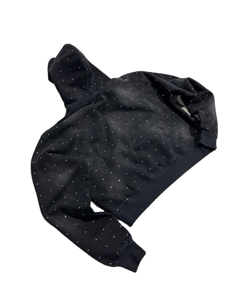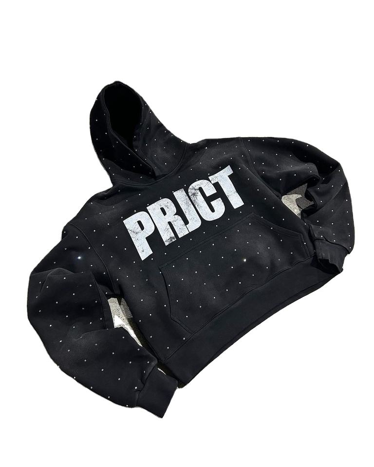 Sudaderas con capucha con diamantes de imitación para hombre con logotipo impreso en pantalla personalizado, algodón pesado de gran tamaño, algodón, lavado ácido, sol, desteñido