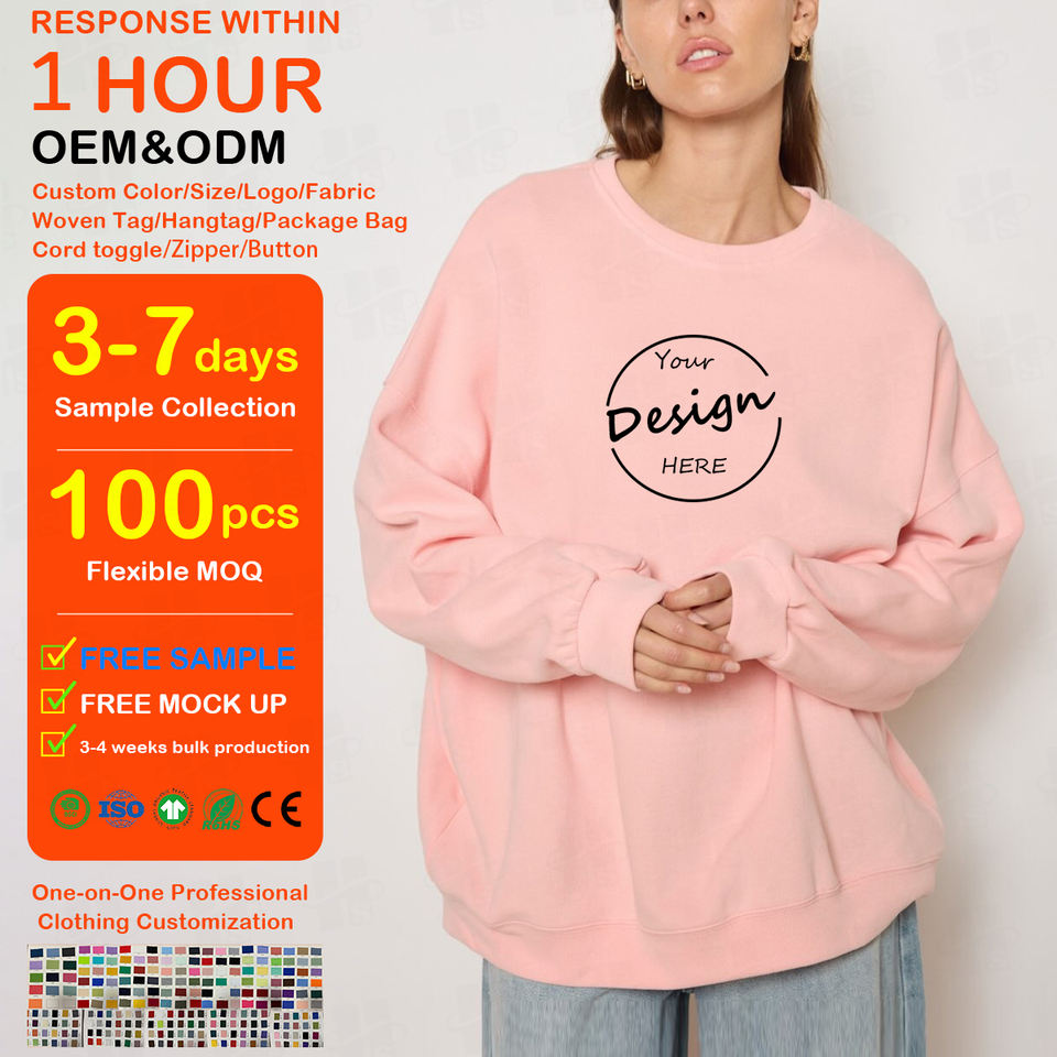 Sudadera Personalizada con Estampado y Bordado, Corte Holgado, Cuello Redondo, Felpa Francesa de Algodón para Mujer