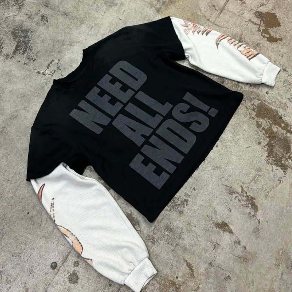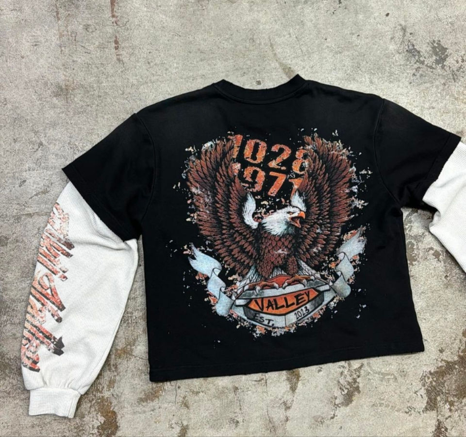 Camiseta de hombre personalizada con serigrafía, estilo vintage, de algodón, con efecto rasgado, manga doble gofrada, desgastada, lavado ácido, 100% algodón tejido.
