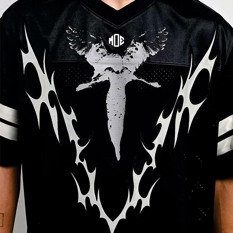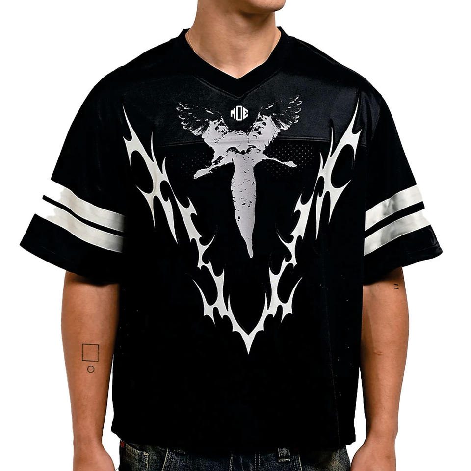 Camiseta de Fútbol Americano Personalizada con Serigrafía, Cuello en V, Malla, Estilo Urbano, Gráficos Góticos, Fabricante OEM Personalizado al por Mayor
