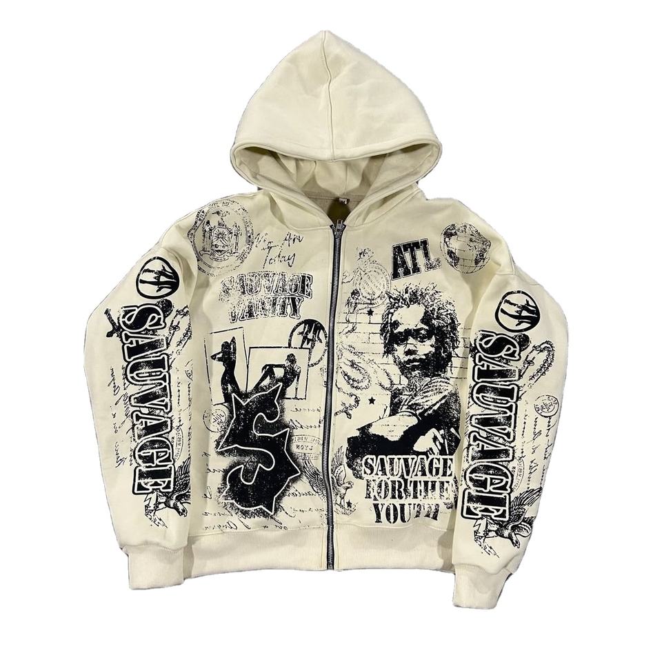 Conjunto de Sudadera con Capucha y Pantalones Deportivos Personalizados con Estampado Serigrafiado, Unisex, Corte Holgado, 100% Algodón Felpa, Diseño Vintage Lavado Ácido, Digital