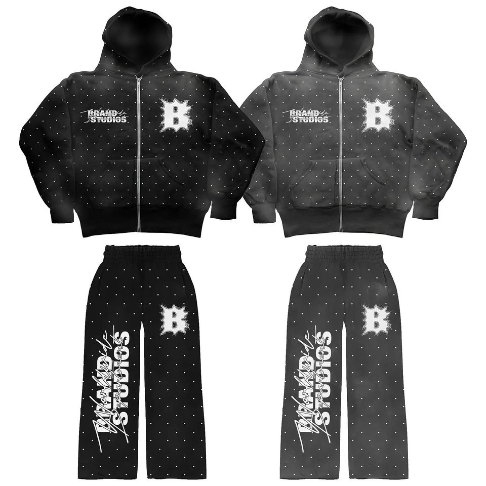 Sudadera con capucha recortada con dobladillo relleno de diamantes de imitación lavado ácido serigrafiado personalizado para hombre Pantalones de chándal acampanados Sudadera con capucha de algodón