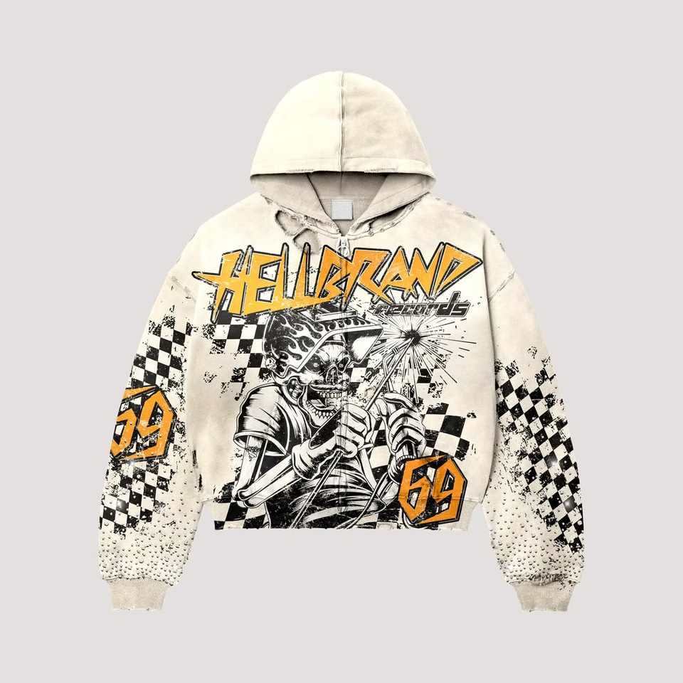 Sudadera con Capucha Personalizada con Estampado Serigrafiado, Estilo Desgastado, con Pedrería, Lavado Ácido, Estilo Vintage, Unisex, Ropa Urbana, Sudadera de Otoño