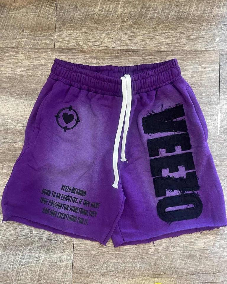 Pantalones cortos con cordón de serigrafía personalizada con parche bordado, ropa de calle desgastada con lavado ácido, dobladillo crudo, pantalones cortos de sudor