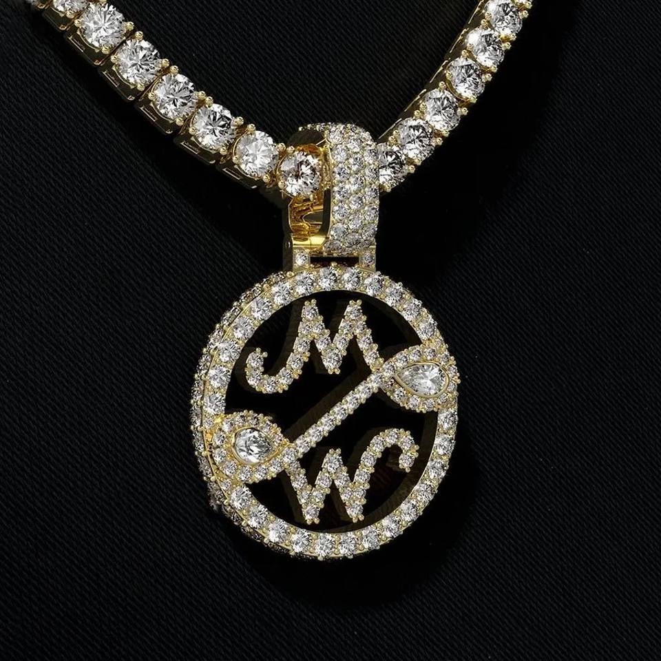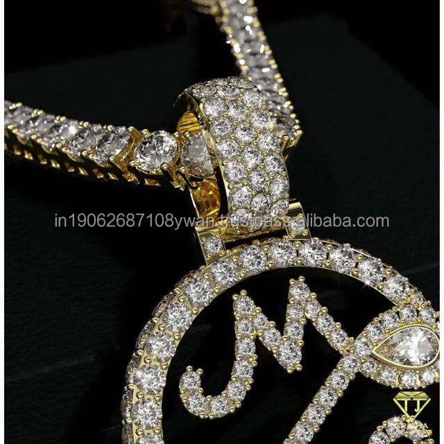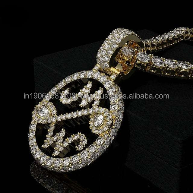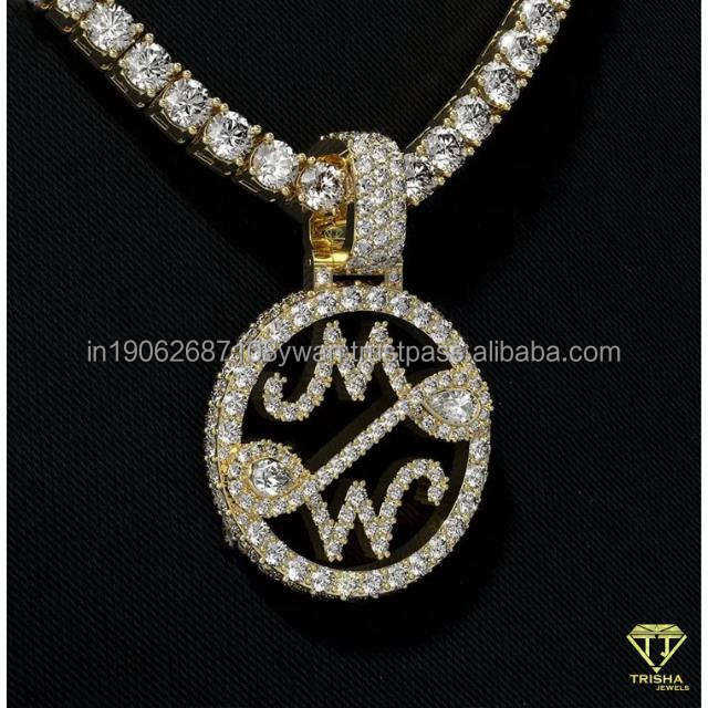 Collar con colgante de escritura personalizada en plata 925 Moissanite Diamond GIA certificado estilo Hip Hop chapado en rodio