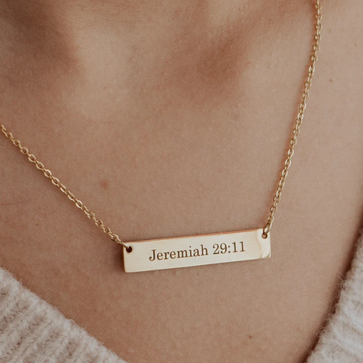 Joyería con Grabado de Escrituras Personalizadas, Collar de Barra de Acero Inoxidable, Versículo Bíblico, Productos Cristianos, Joyería Religiosa de Fe para Mujer