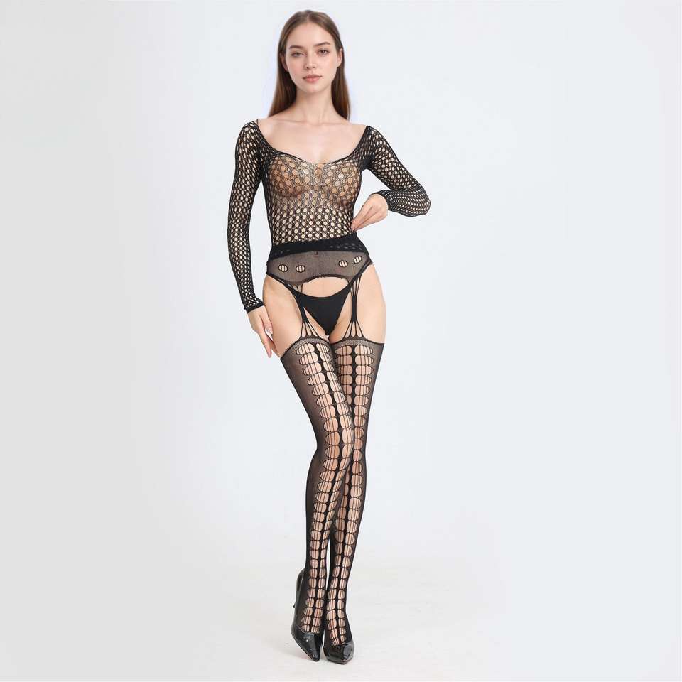 Body de malla transparente de nailon transpirable y seductor, con diseño de red, escote en forma de corazón, sin tirantes y control medio para mujer.