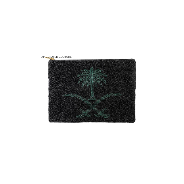 Monedero de palma bordado a mano con cuentas de semillas personalizadas, con cierre de cremallera, ecológico, con temática de fiesta.