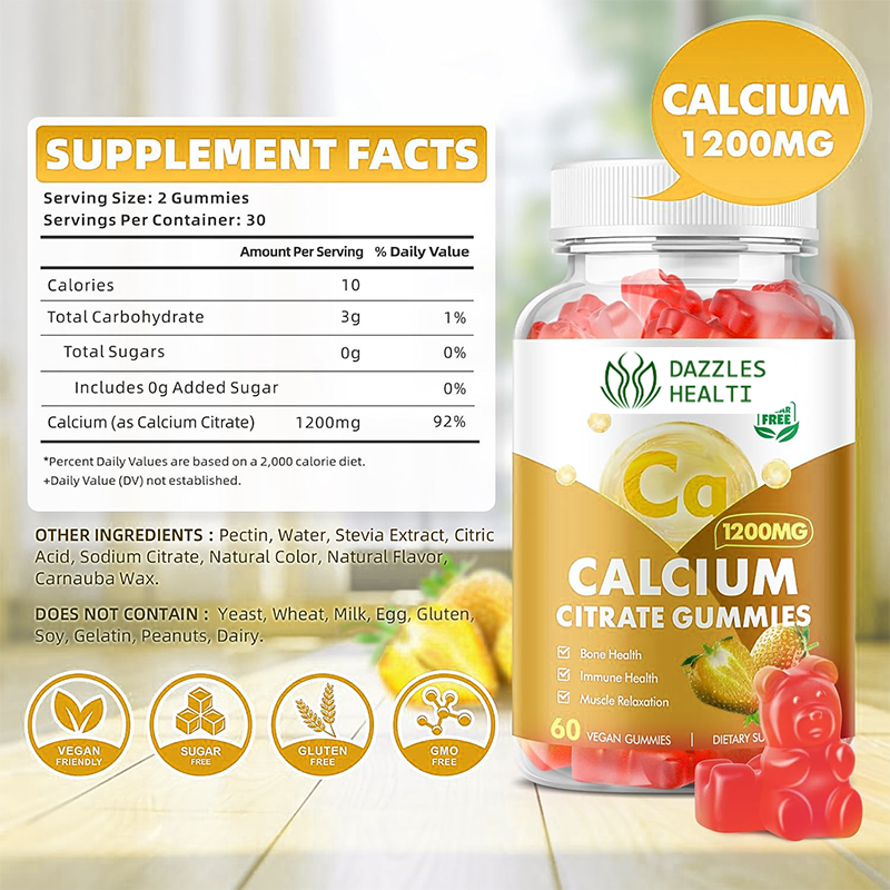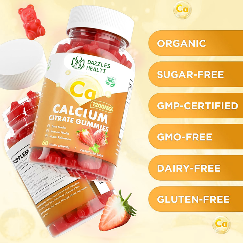 Gomitas de Citrato de Calcio Personalizadas con Citrato de Calcio, Magnesio, Zinc y Suplemento Alimenticio de Citrato de Calcio para el Bienestar