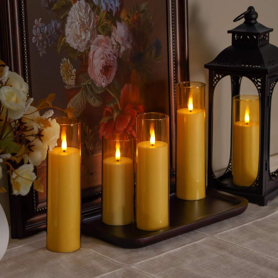Juego Personalizado de 5 o 9 Velas LED Eléctricas de Acrílico y Plástico con Cera de Parafina, Funcionan con Batería, Control Remoto, para Decoración del Hogar