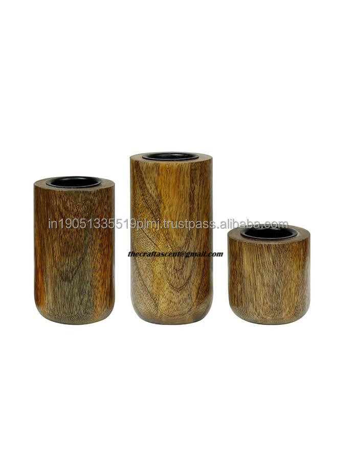 Juego personalizado de 3 soportes para velas, portavelas decorativo de madera de mango, diseño único, para restaurante y Hotel, artículo para uso en fiestas de bodas