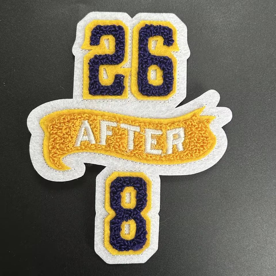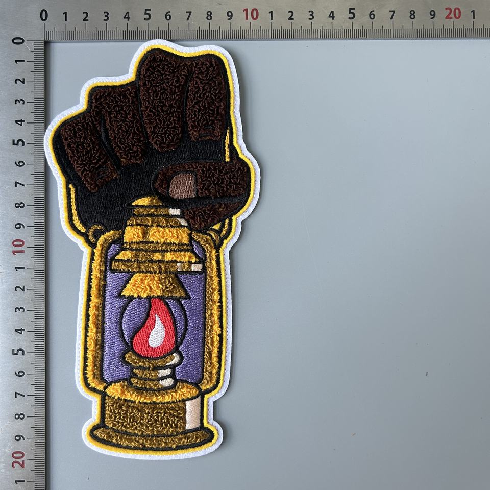 Parche bordado personalizado con detalles pequeños, insignia de gran tamaño, logotipo termoadhesivo para toalla, chenilla, con reverso adhesivo